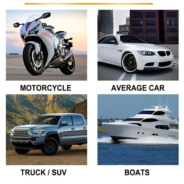 Používajte CARCOAT na autá, lode, motocykle, obytné vozidlá, štvorkolky a ďalšie. Je bezpečný pre všetky povrchy vrátane laku, plastov a skla.