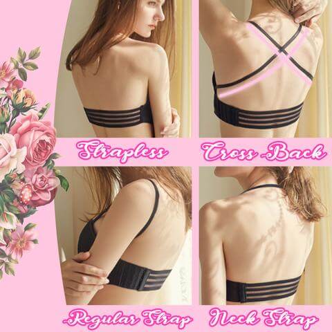 - Štyri spôsoby nosenia: Je to ideálna podprsenka pre oblečenie bez ramienok, s hlbokým či voľným výstrihom, viazané za krkom, s ramienkami do kríža a ďalšie typy odhaľujúceho oblečenia. Poskytuje rôzne možnosti pre rôzne typy vášho oblečenia.