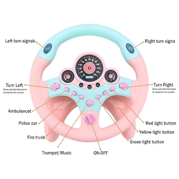 Tento volant navrhnutý so zábavnými zvukmi, blikajúcimi svetlami a ľahko stlačiteľnými tlačidlami zaujme malých vodičov a zapojí ich do nápaditej hry.