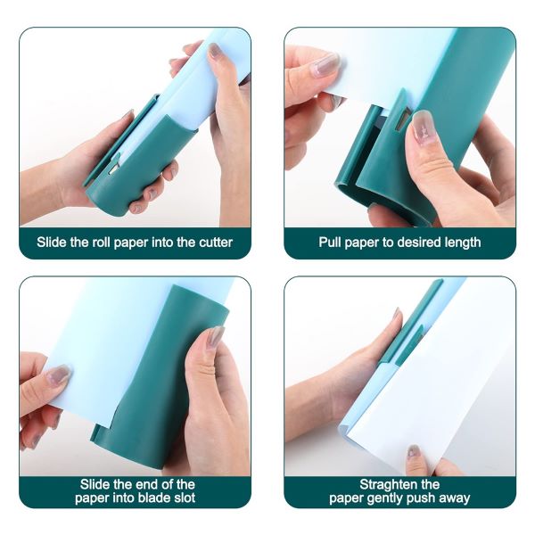 5. Po dokončení rezu stačí vrátiť rezačku baliaceho papiera do stredu baliaceho papiera. Funguje aj ako organizér, ktorý zabezpečí, že papier zostane na svojom mieste a zostane úhľadne usporiadaný, čím sa zabráni jeho rozkotúľaniu alebo neorganizovanému usporiadaniu.