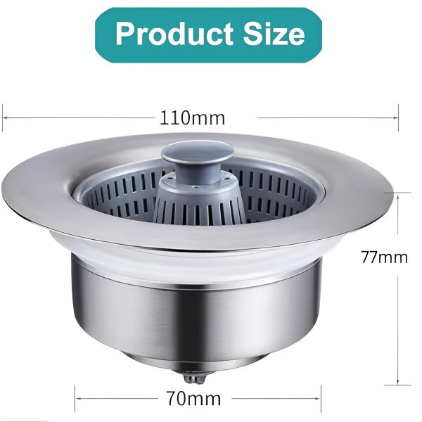 Toto riešenie „všetko v jednom“ funguje ako sitko, zátka a filter proti zápachu – udržiava váš drez čistý, suchý a bez zápachu.