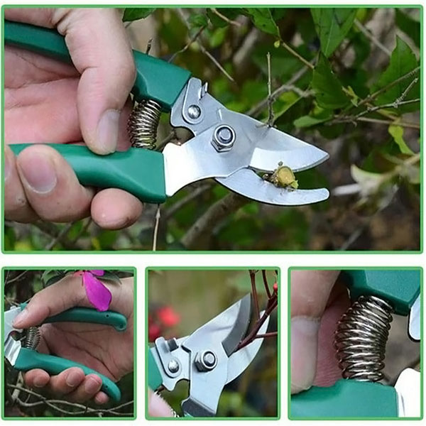 Poradte si s prerastenými konármi ako profesionál! Súčasťou súpravy sú aj vysokokvalitné nožnice, ktoré dokážu strihať konáre hrubé až 12 mm. Zakrivená konštrukcia čepele zaisťuje presné a efektívne prerezávanie.
