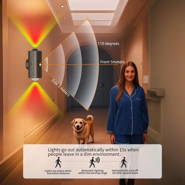 Zistí pohyb osoby v tmavých priestoroch a rozsvieti sa na 15 sekúnd, potom sa vypne, aby šetrilo energiu.