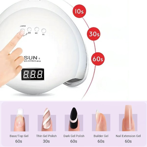 S 3 nastaveniami časovača (10s, 30s, 60s) môžete prispôsobiť proces sušenia podľa typu gélu a vašich osobných potrieb. Inteligentný senzor sa automaticky zapne, keď sú vaše ruky alebo nohy umiestnené pod lampou, čo zaručuje bezproblémový zážitok zakaždým.