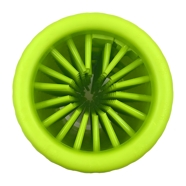Valcovitý dizajn umožňuje efektívne umývanie ťažko prístupných miest. Jednoducho vložte labku svojho psa, otočte ňou a nechajte silikónové štetiny odstrániť nečistoty a zvyšky. Užívajte si bezchybne čistý domov bez starostí.