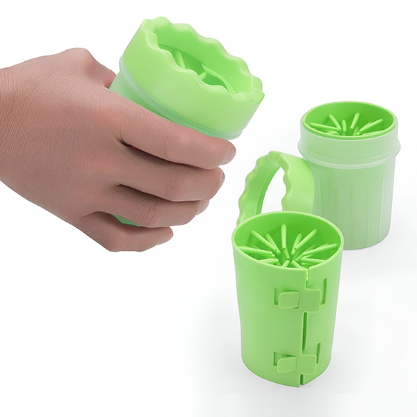 Do pohára pridajte vodu a čistiaci prostriedok pre domáce zvieratá, vložte zablatenú labku, otočte a vysušte. Po vyčistení všetkých tlapiek vylejte špinavú vodu a vyčistite pohár a silikónovú kefu. Delená konštrukcia umožňuje jednoduché rozobratie a čistenie, vďaka čomu je pohár vždy pripravený na ďalšie použitie.