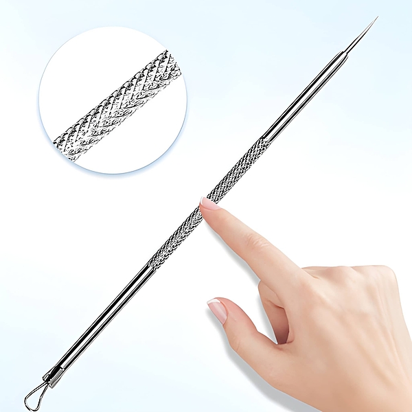 Nekĺzavý nástroj má dva zahnuté konce, ktoré umožňujú ľahko odstrániť čierne a biele bodky.