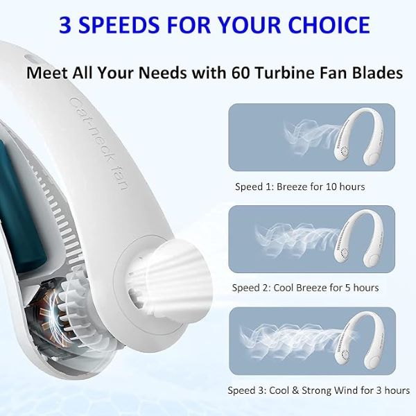 Tento ventilátor na krk, vyrobený z ABS a mäkkého silikónu, má 360° flexibilnú otočnú konštrukciu,