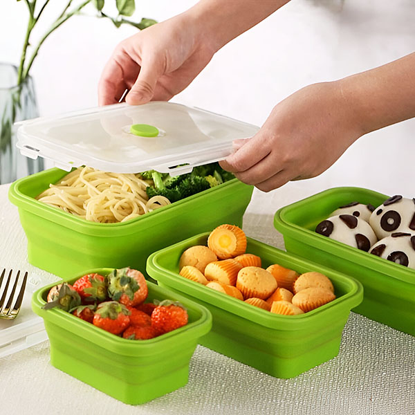 Tieto nádoby sú vyrobené z vysokokvalitného silikónu bez obsahu BPA, vďaka čomu zostanú vaše potraviny čerstvé a bez škodlivých chemikálií.