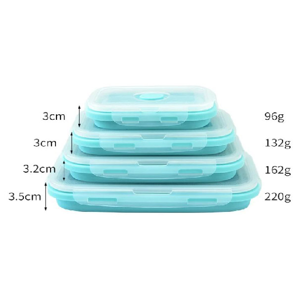 📦 Balenie obsahuje: 4x Skladacie silikónové nádoby (350 ml, 500 ml, 800 ml, 1200 ml)