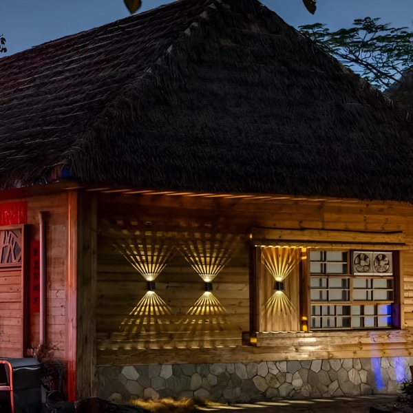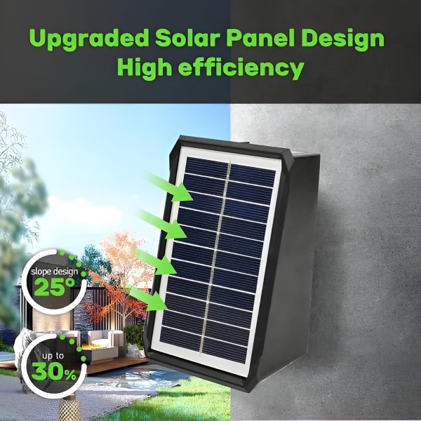 Tieto solárne nástenné lampy sa nabíjajú počas dňa a automaticky svietia v noci—ideálne pre vchody, verandy alebo terasy.