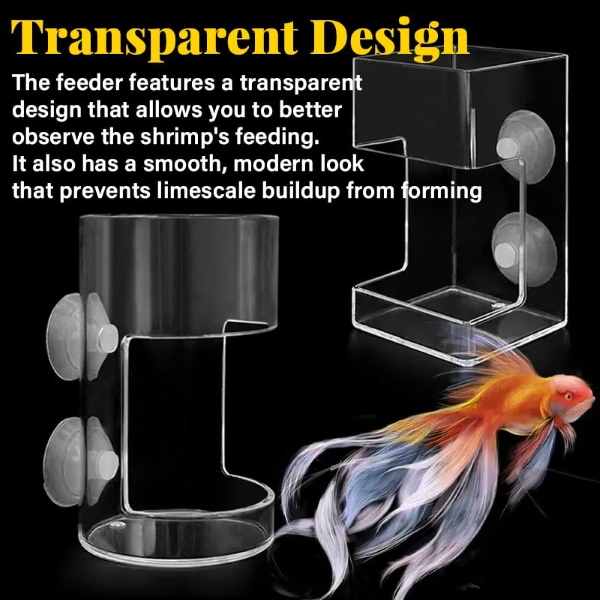 Priehľadný materiál robí kŕmidlo takmer neviditeľným vo vnútri akvária.